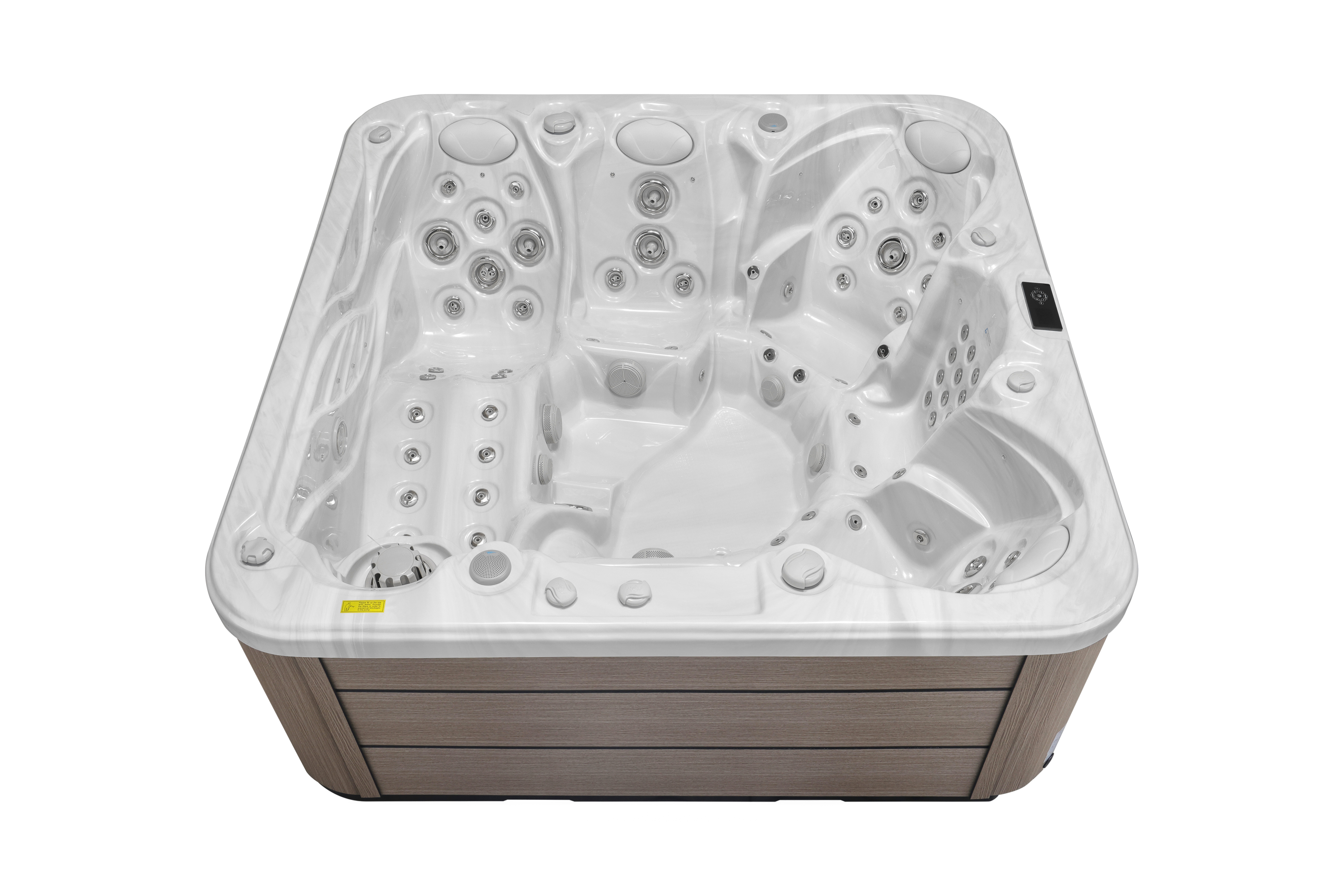 NordicSpa Frigg с размером чаши 2,25 x 2,25 м идеально подходит для установки как в помещении, так и на улице. Просторная квадратная чаша с четырьмя эргономичными подголовниками комфортно вмещает до шести человек, создавая условия для полноценного отдыха и общения.