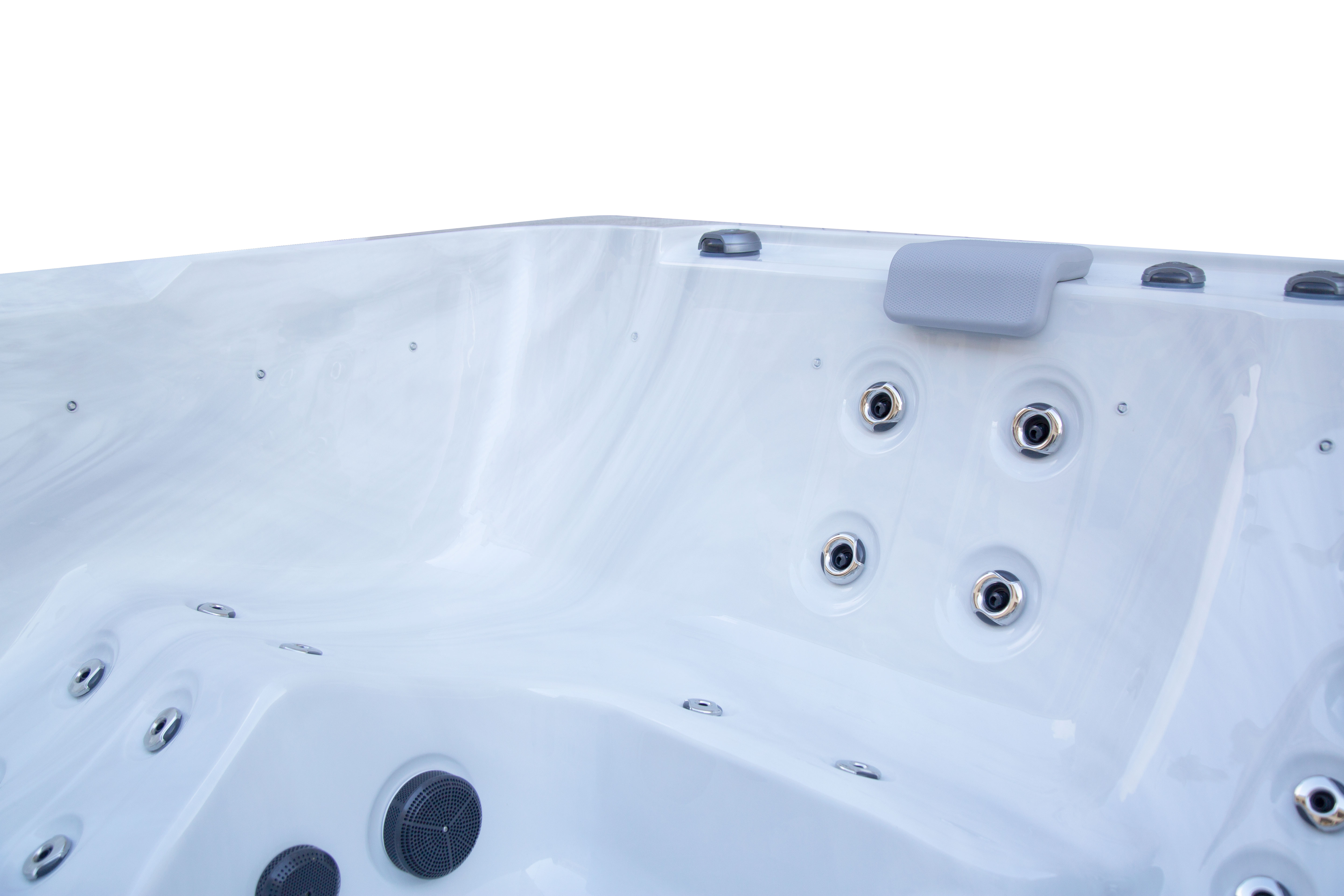 NordicSpa Liv с размером чаши 2,2 x 2,2 м идеально подходит для установки как в помещении, так и на улице. Просторная квадратная чаша с пятью эргономичными подголовниками комфортно вмещает до четырех человек, создавая условия для полноценного отдыха и общения.