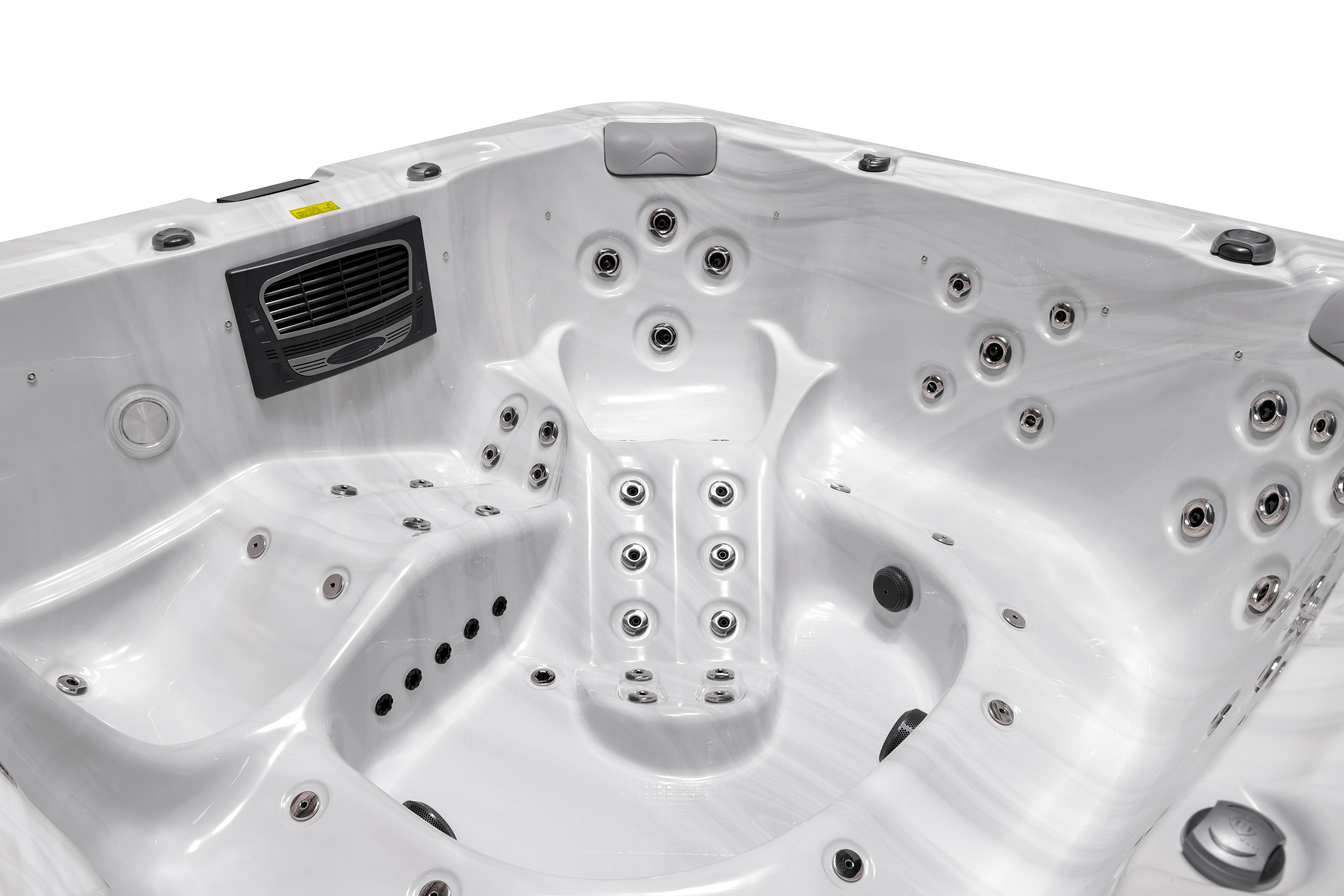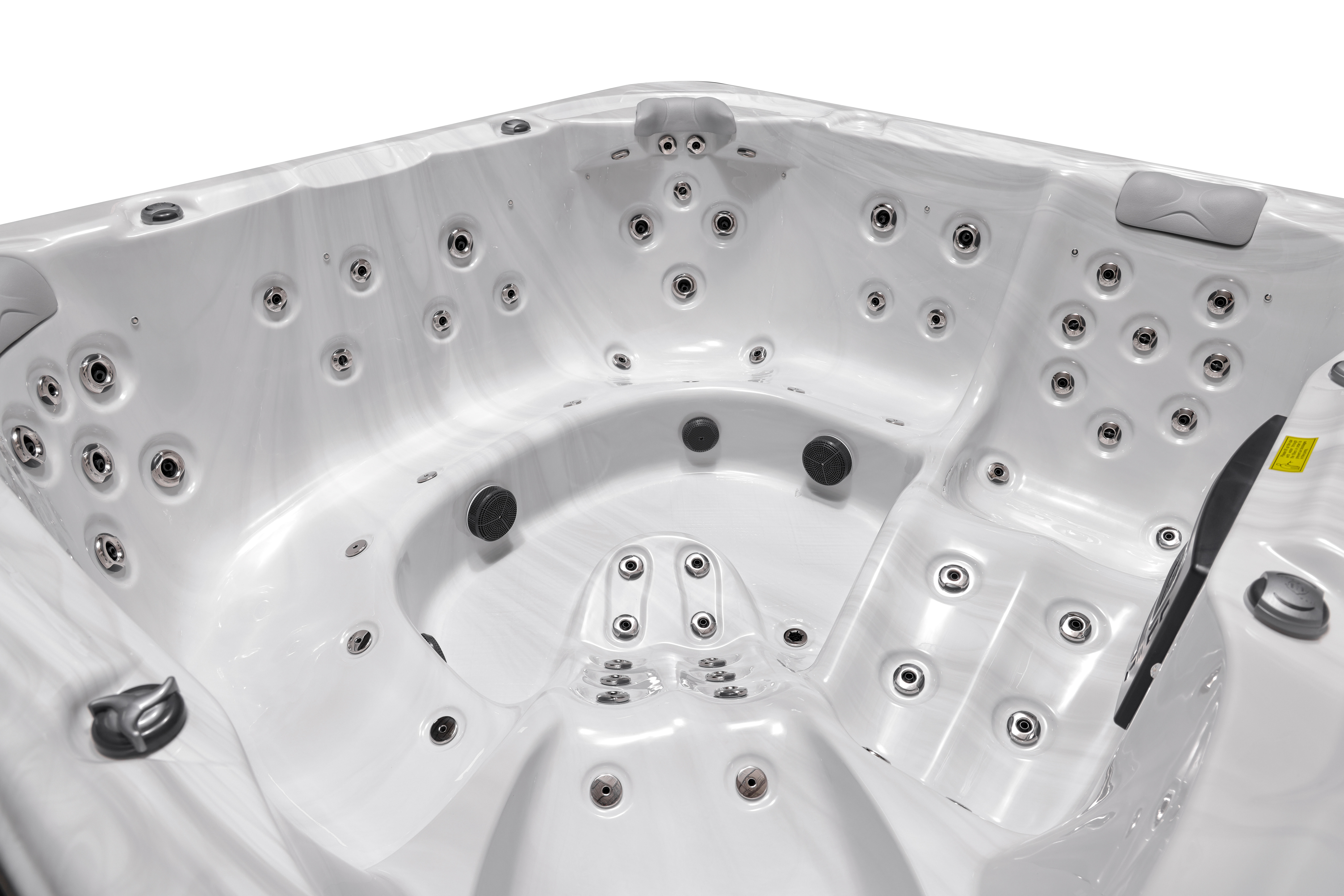 Meyli оснащен 66 воздушно-водяными форсунками и 12 дополнительными аэро-форсунками (опционально), которые создают невероятный массажный эффект для полного расслабления всех групп мышц. Просторная эргономичная конструкция с восемью посадочными местами и четырьмя подголовниками обеспечивает максимальный комфорт для большой компании.