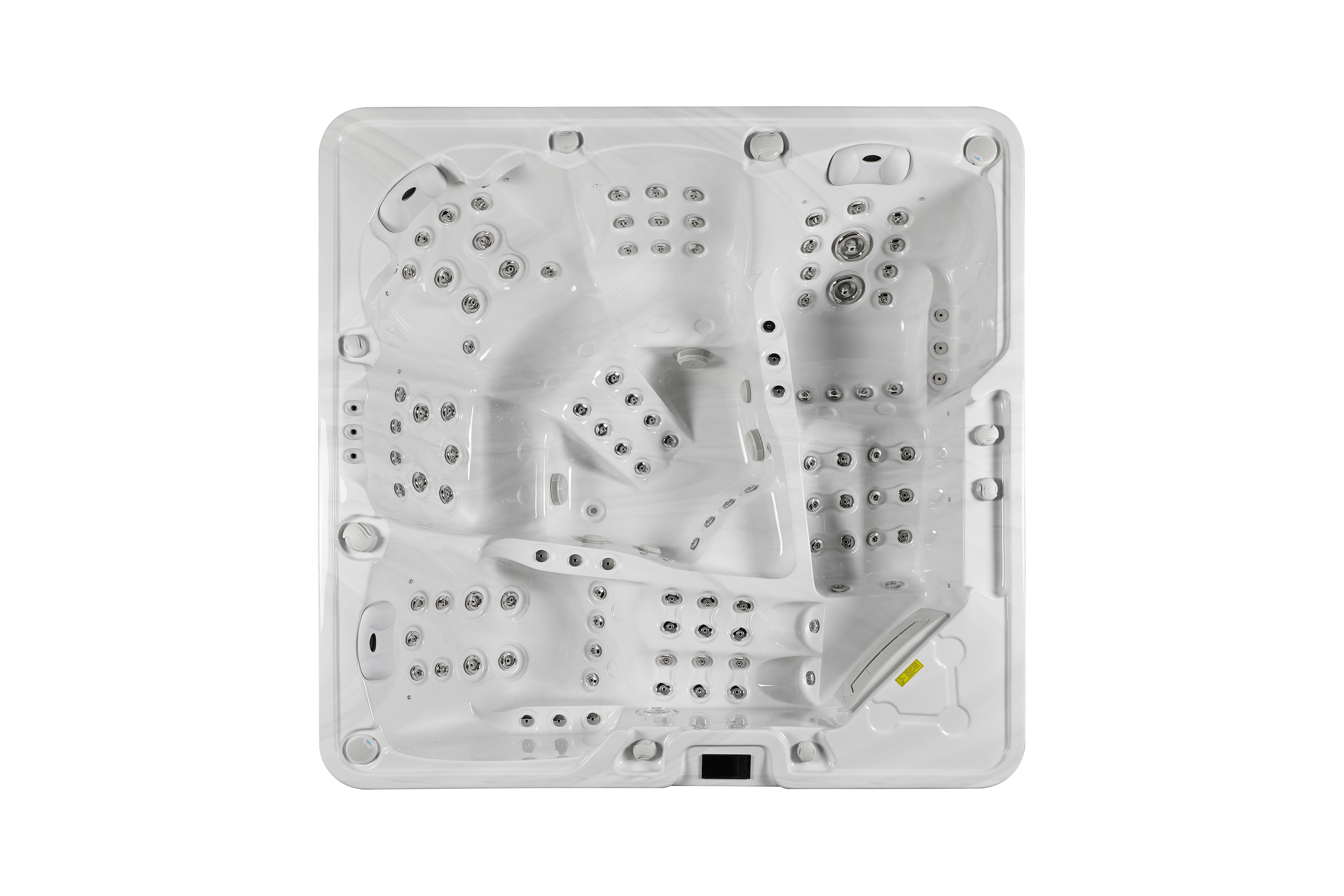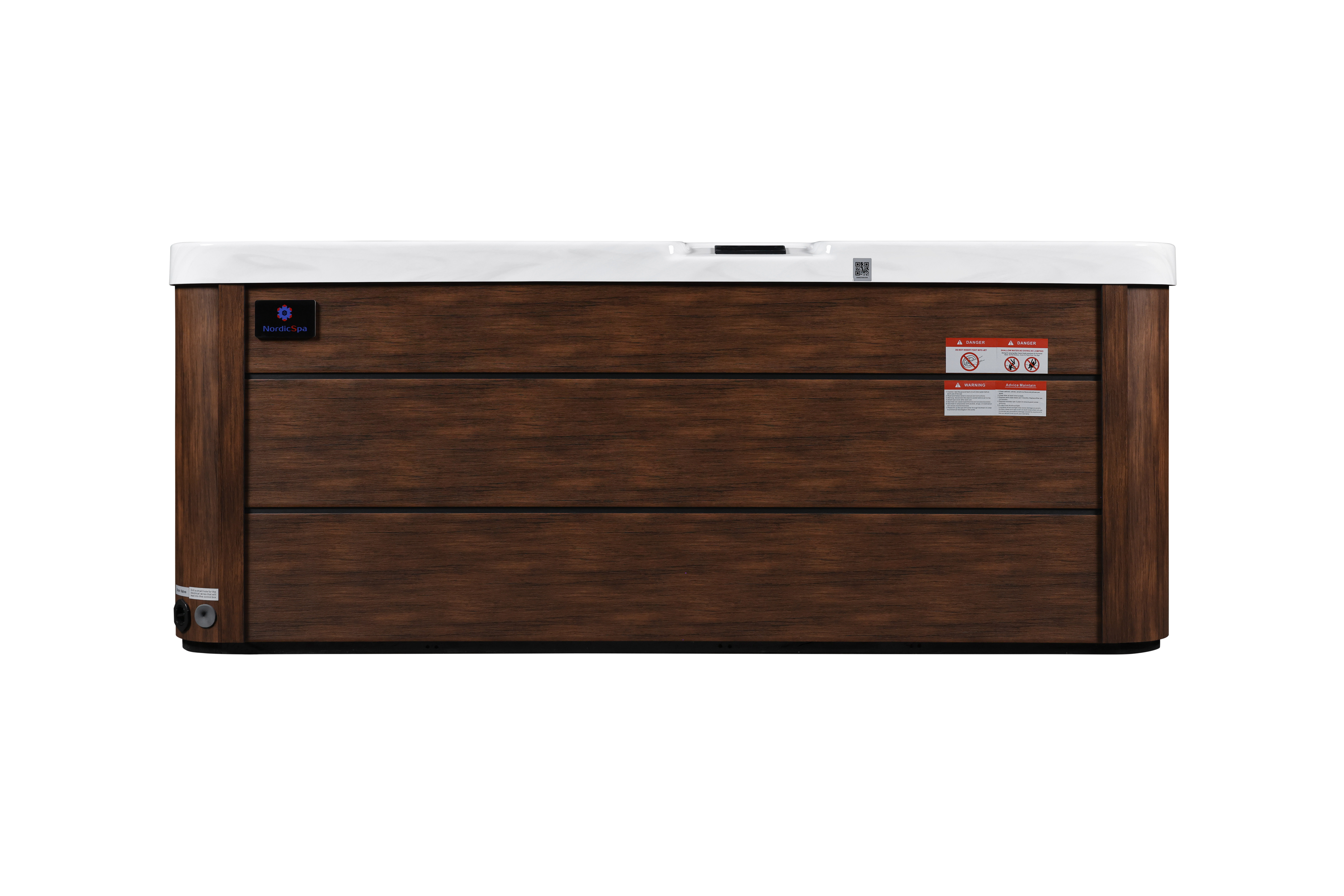 NordicSpa Tyur с размером чаши 2,25 x 2,25 м идеально подходит для установки как в помещении, так и на улице. Просторная квадратная чаша с тремя эргономичными подголовниками комфортно вмещает до пяти человек, создавая королевские условия для полноценного отдыха и общения.