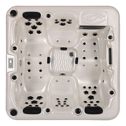 Вместительный гидромассажный бассейн (1300 л) сконструирован специально для отдыха дружеской или семейной компании. В модели SPA RELAX — два места-шезлонга и три ковшеобразных сидячих места.